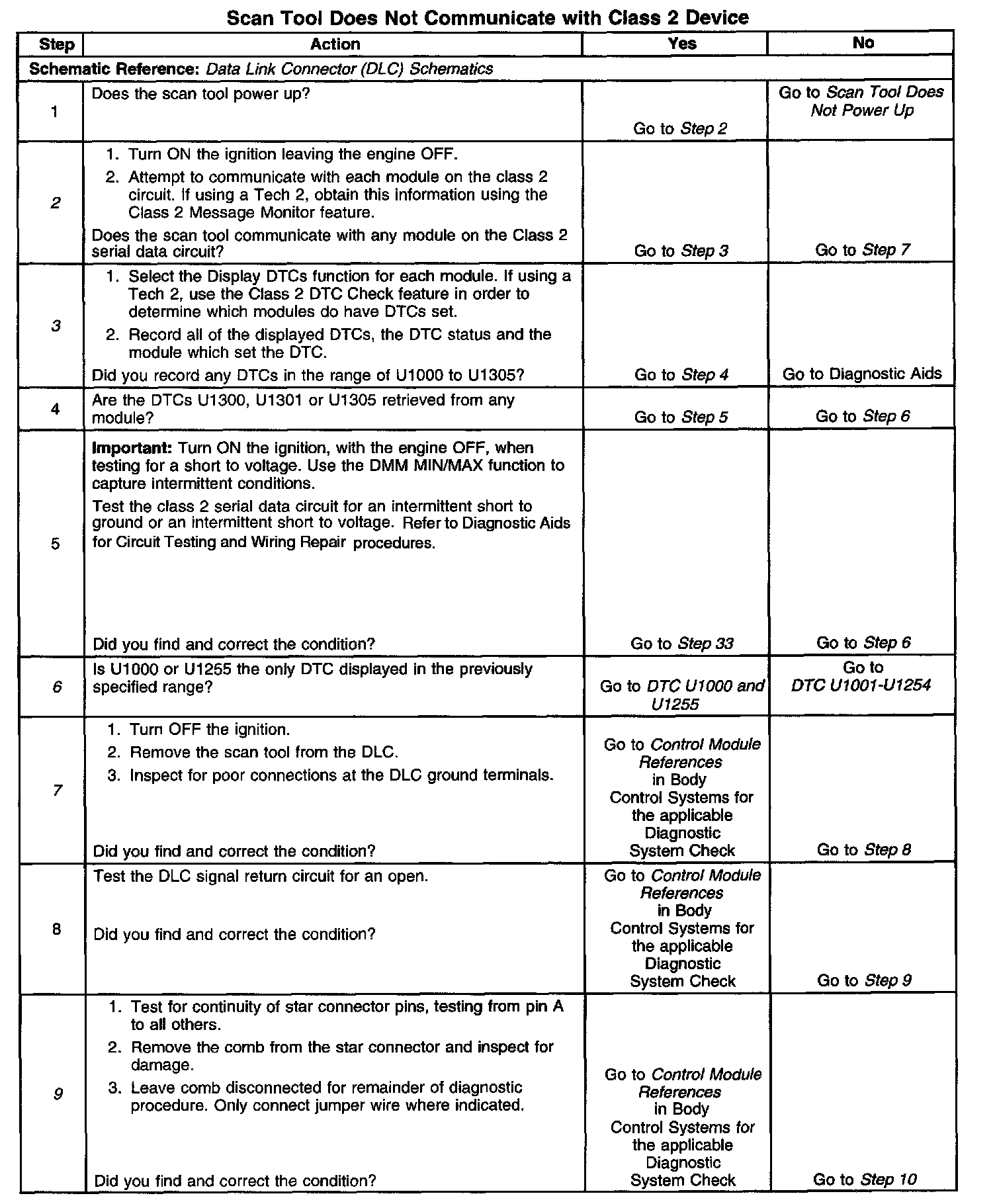 10. An open in the class 2 circuit between the DLC and SP201 will prevent the scan tool from communicating with a module. This condition will not set a DTC.