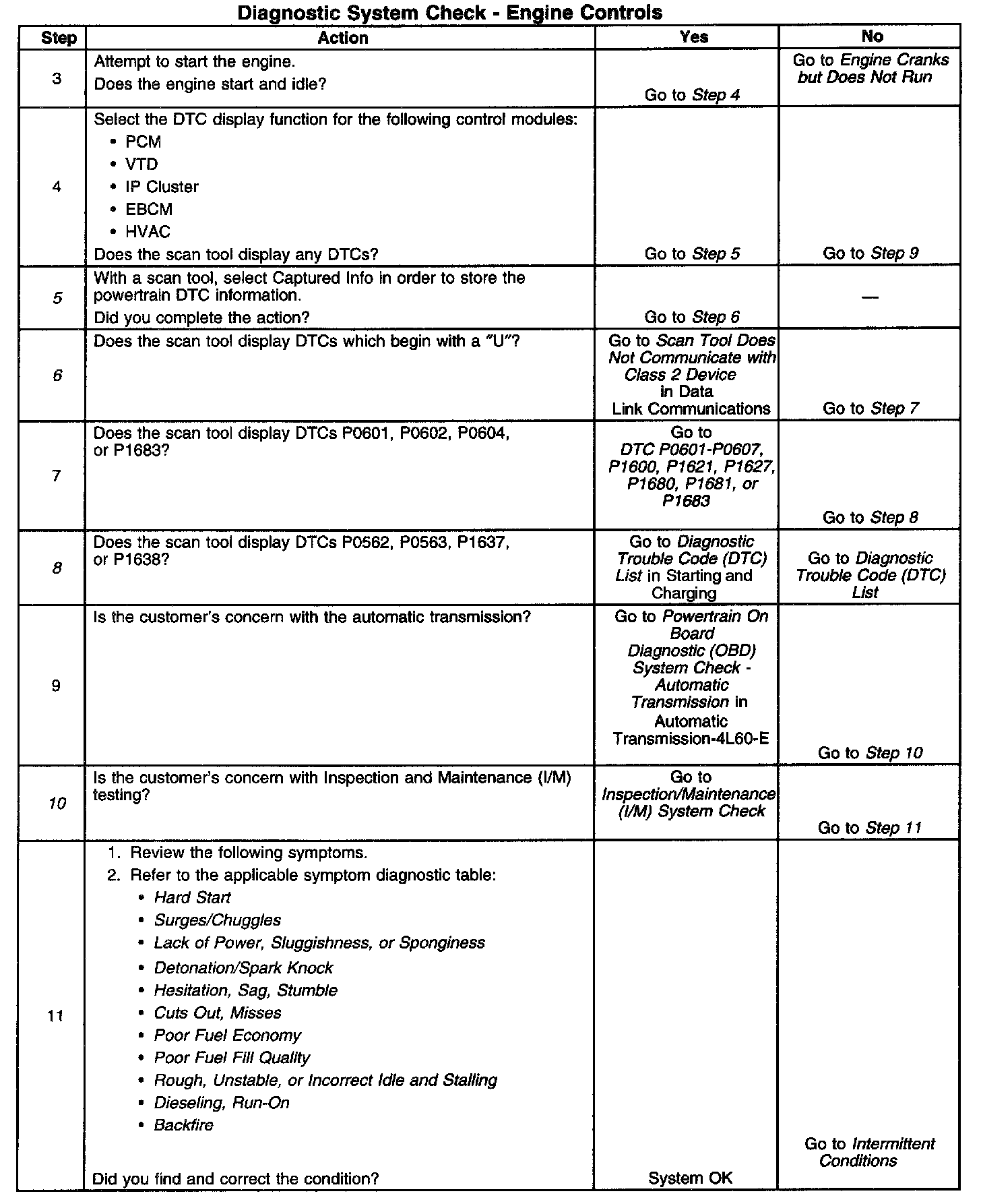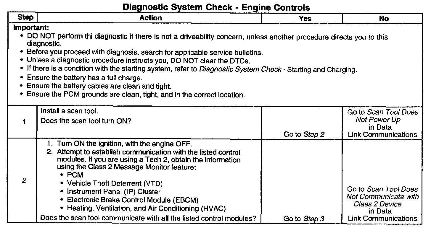 DESCRIPTIONThe Diagnostic System Check-Computers and Controls Systems is an organized approach to identifying a condition that is created by a malfunction in the powertrain control system. The Diagnostic System Check must be the starting point for any driveability concern. The Diagnostic System Check directs the service technician to the next logical step in order to diagnose the concern. Understanding and correctly using the diagnostic table reduces diagnostic time, and prevents the replacement of good parts.