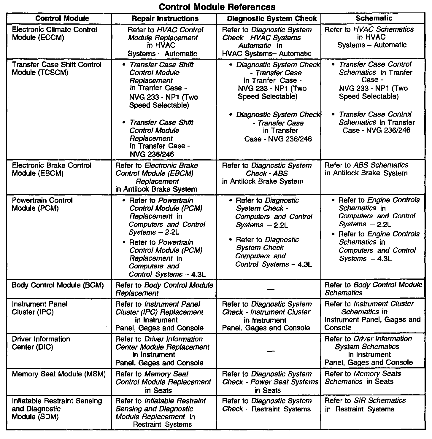 Control Module References
