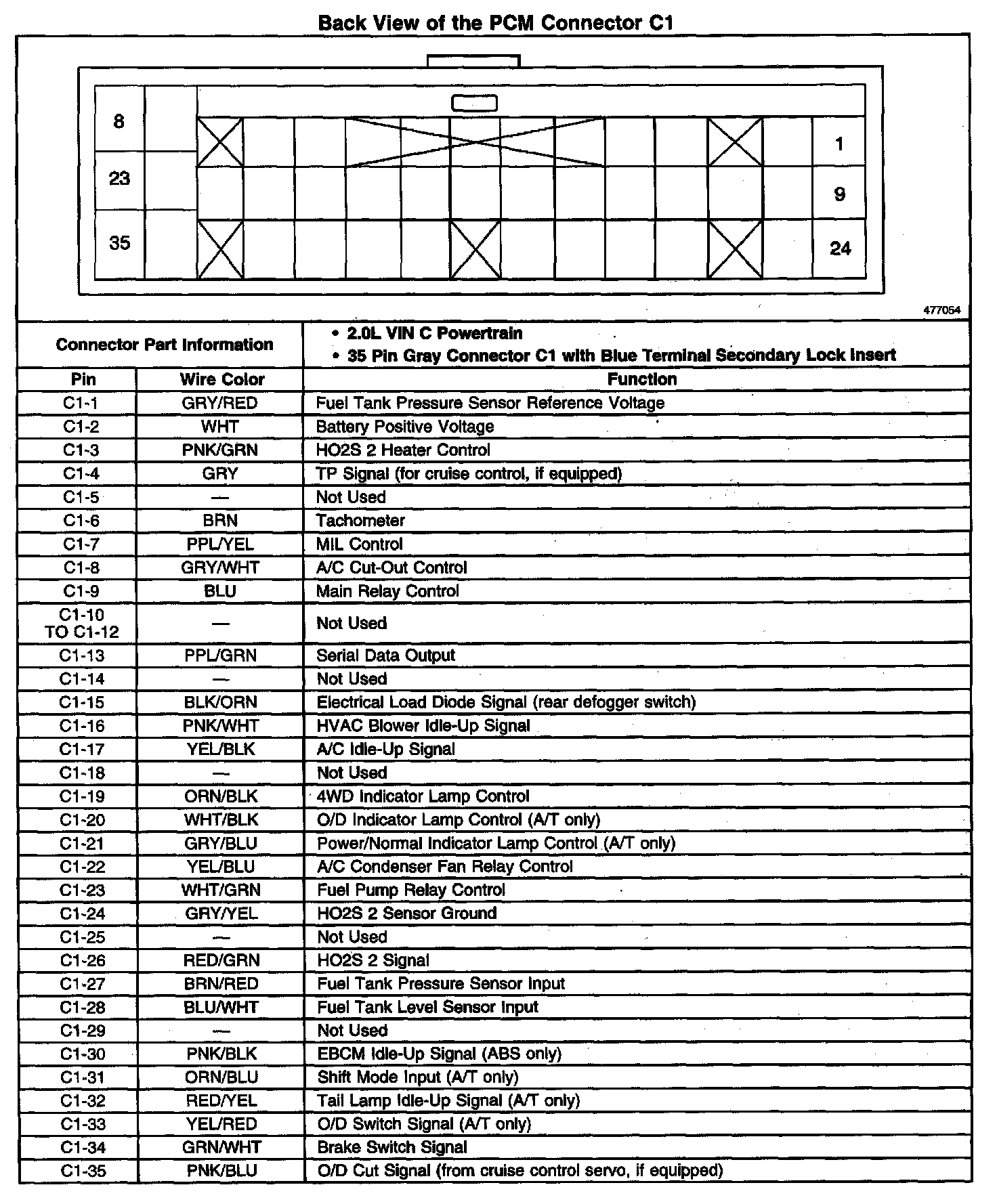 Back View Of The PCM Connector C1:
