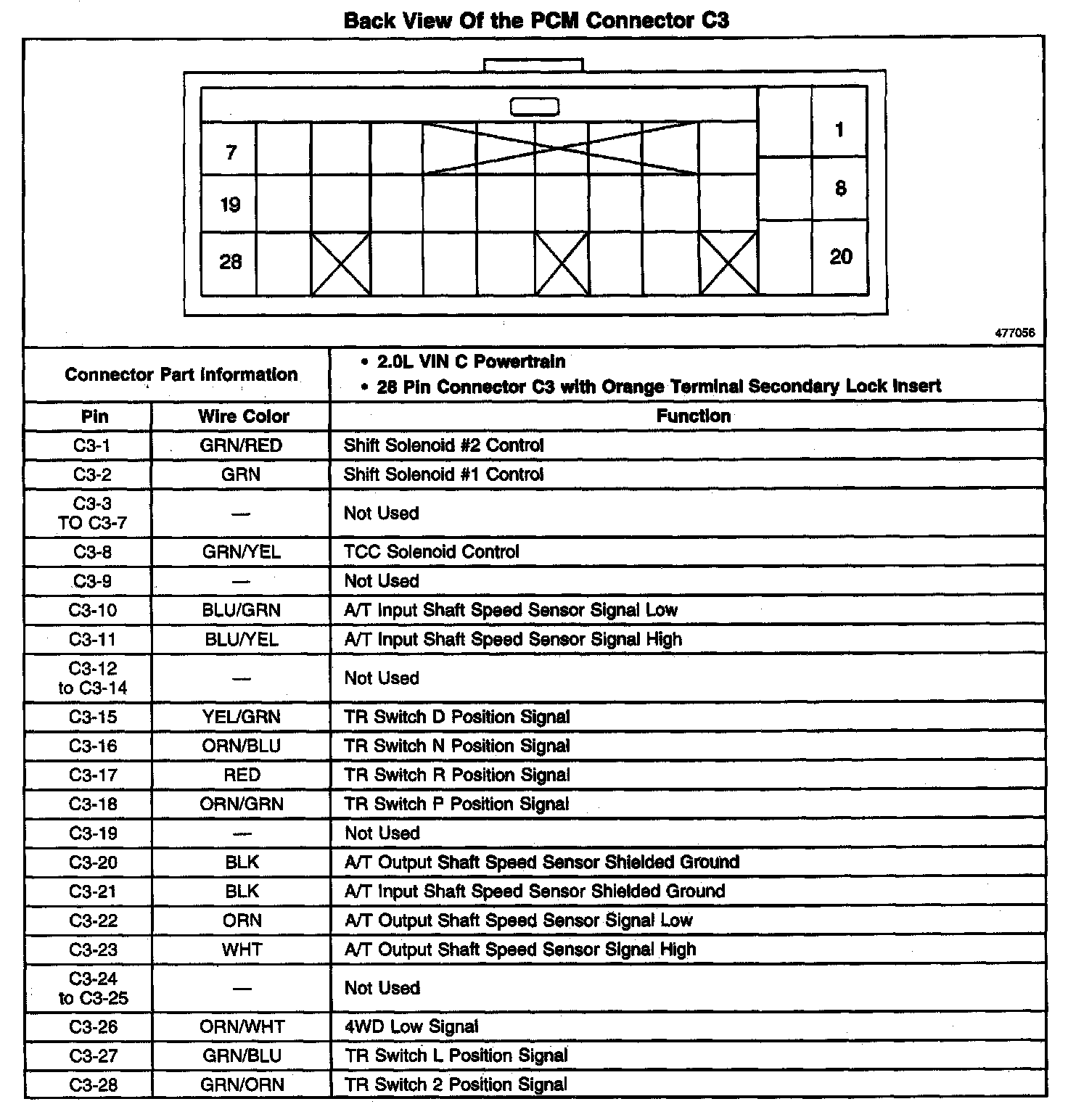 Back View Of The PCM Connector C3: