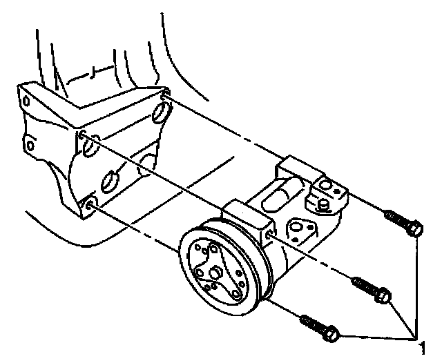 1. Install the compressor to the vehicle. Secure the compressor with the 3 bolts (1).