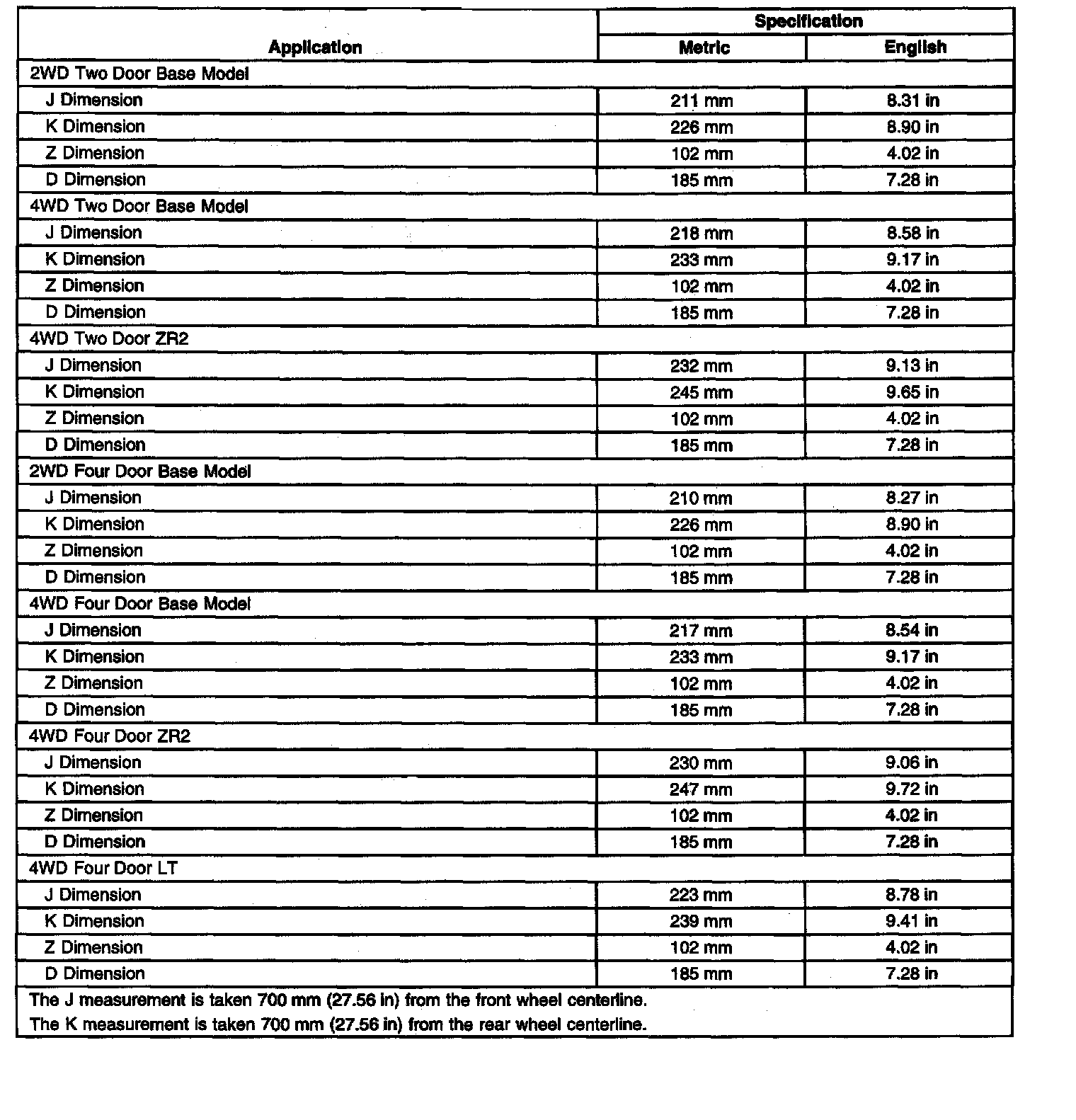Ride/Trim Height Specifications
