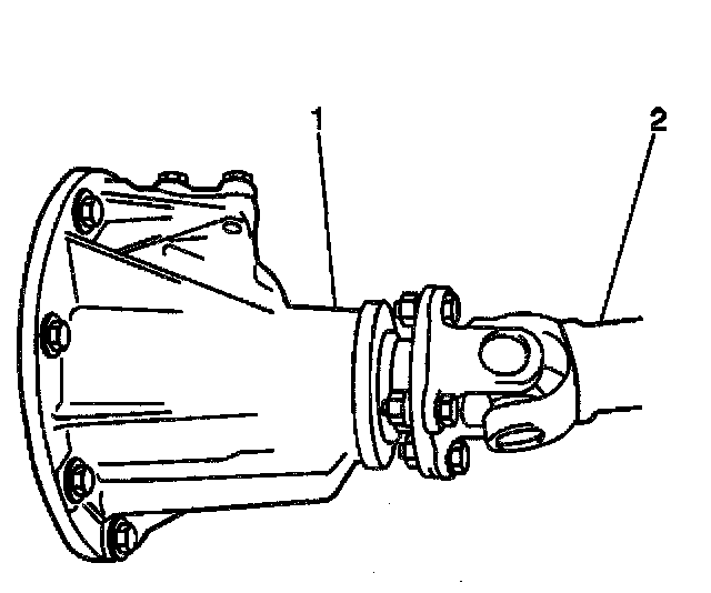 22. Install the rear propeller shaft (2) into the vehicle. Secure with 4 nuts and bolts.