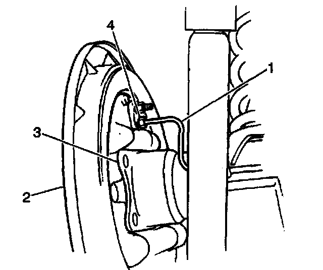 14. Install the brake hose to the rear axle housing brake hose bracket (3). Secure with the E-clip (1).