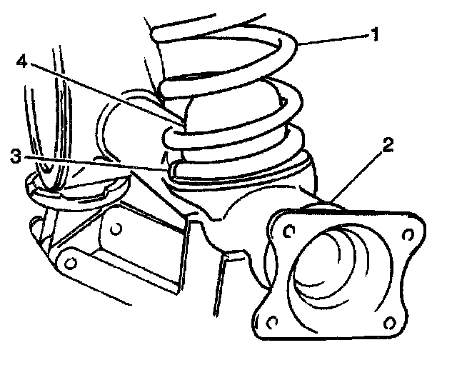 Caution: To prevent personal injury and/or component damage, use the proper tools to support the lower control arm when removing the coil spring. The coil spring is under extreme pressure and can become a projectile should the spring separate from the lower control arm before all of the tension is relieved.