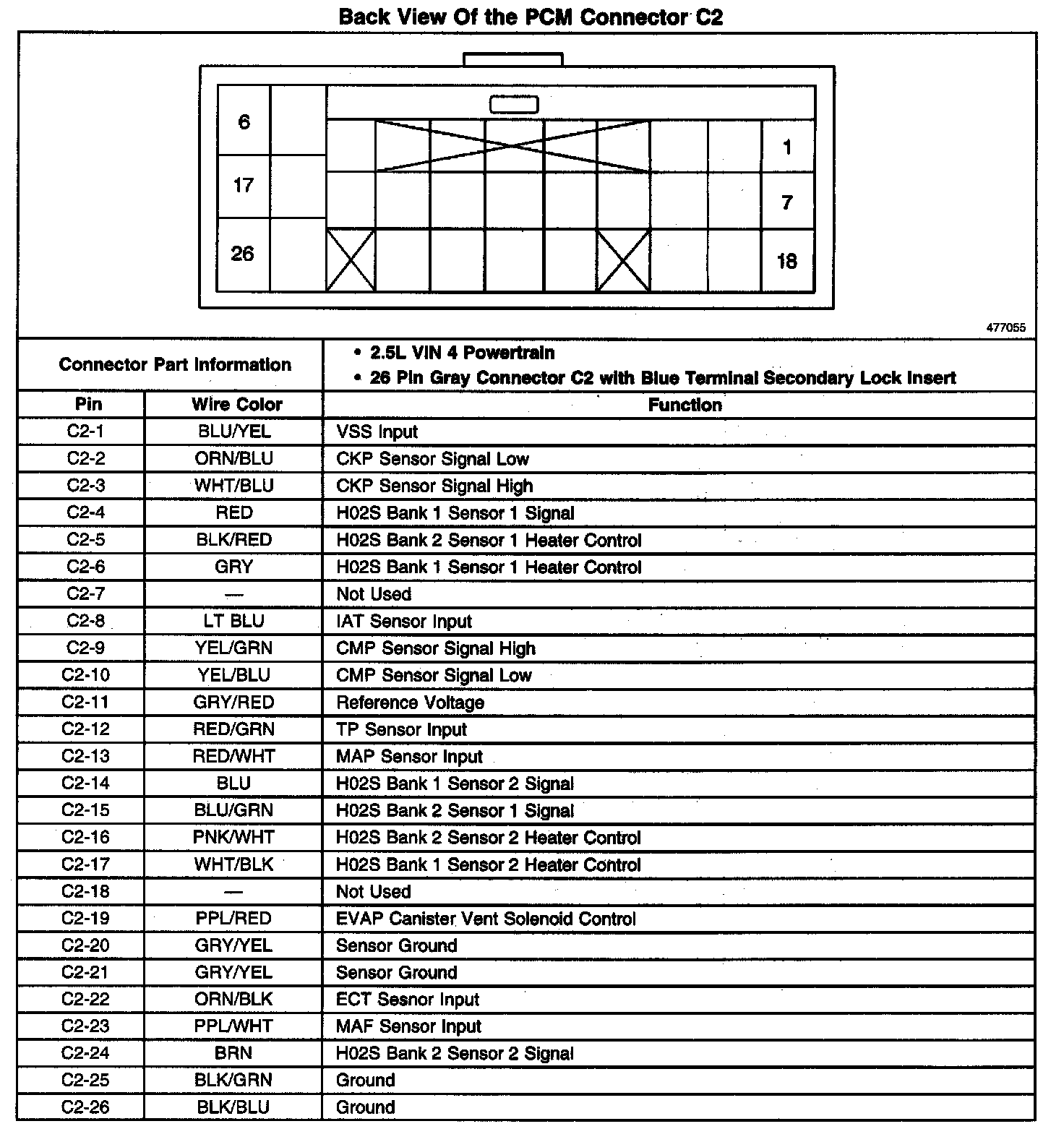 Back View Of The PCM Connector C2: