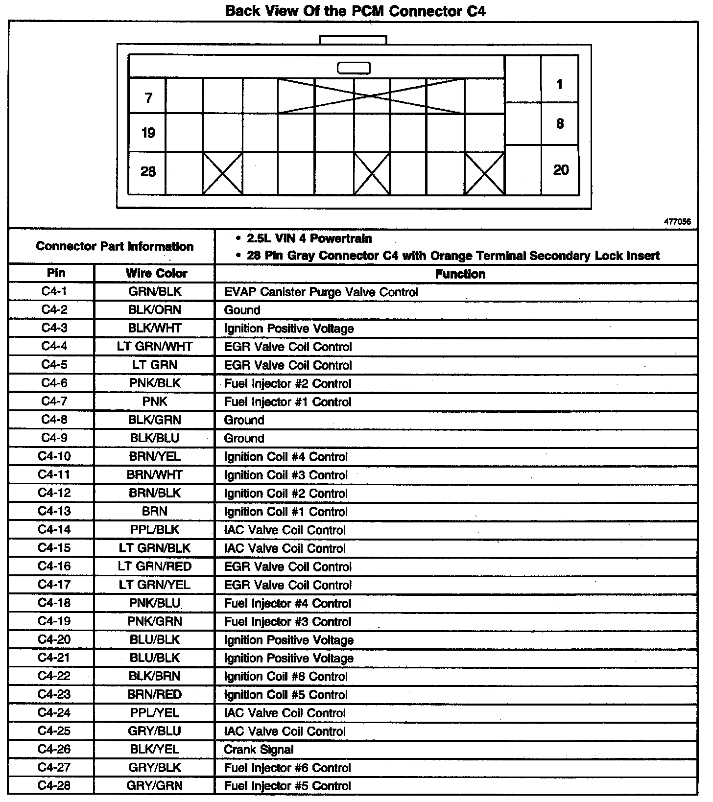 Back View Of The PCM Connector C4: