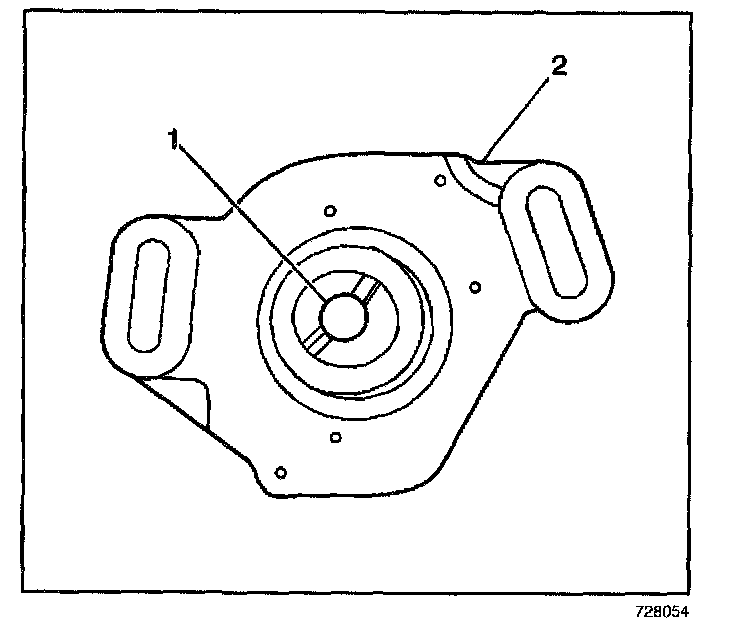 3. Align the offset coupling (1) of the CMP sensor (2) in order to correctly engage the drive slot in the end of the camshaft.