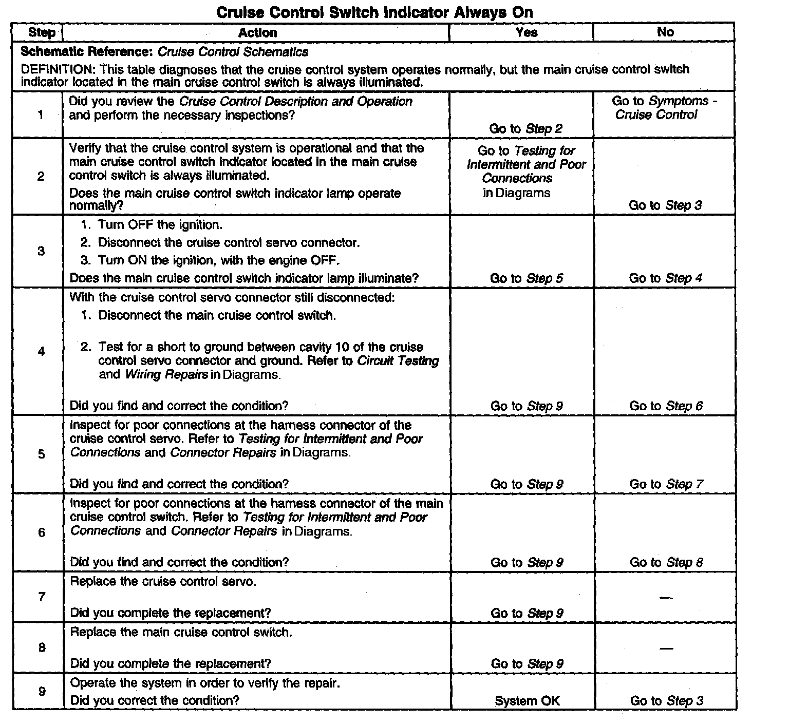 Cruise Control - Switch Indicator Always On