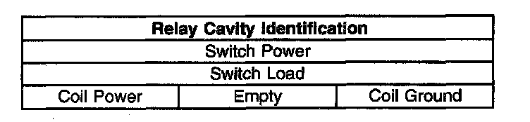 Use the relay cavity table in order to locate the correct cavities to probe during diagnosis. The table layout corresponds to the cavity layout of the relay block.
