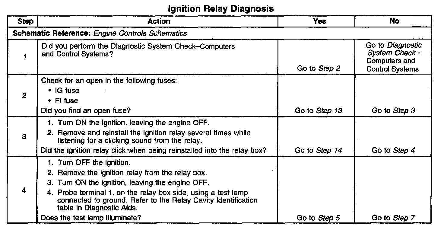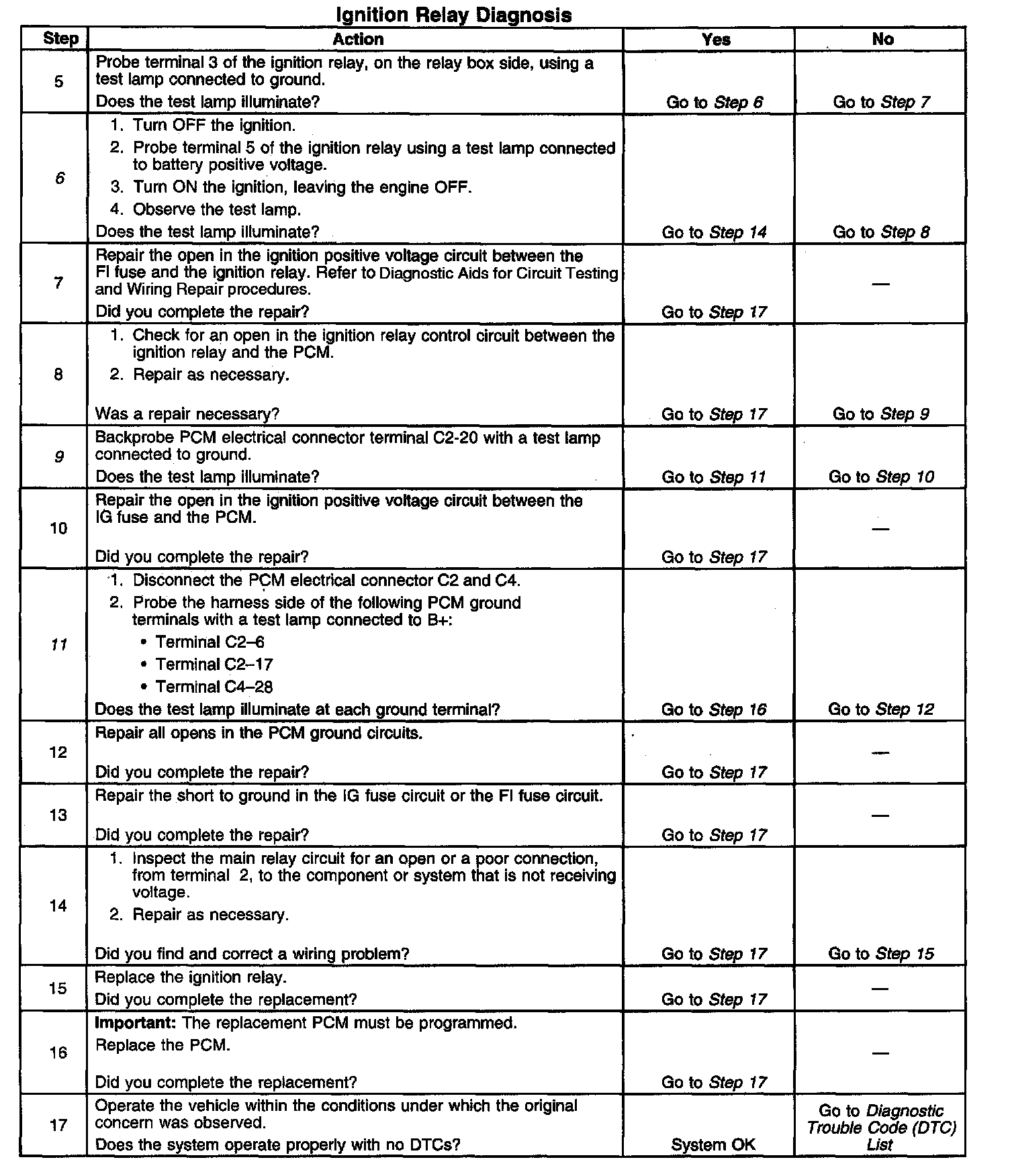 11. This step checks for an open in the PCM electrical grounds. The PCM will not operate the ignition relay if there are no electrical grounds.