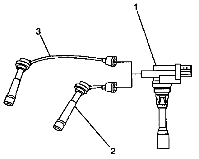 1. Install the 1 cylinder spark plug wire (3) to the ignition coil (1) or the 2 cylinder spark plug wire (2) to the ignition coil (1).