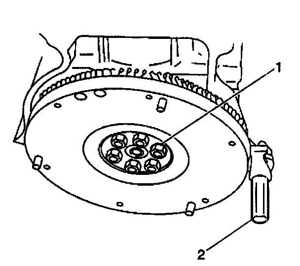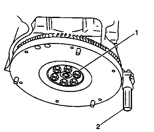 2. Apply GM P/N 12345493 (Canadian P/N 10953488), or the equivalent, to the flywheel retaining bolt threads.
