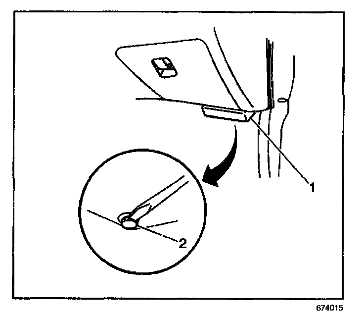3. Release the two plastic retainers (2) with the blade of a screwdriver and remove the PCM cover (1).