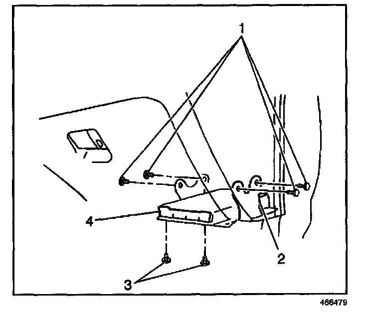 1. Install the PCM bracket (2) underneath the instrument panel.