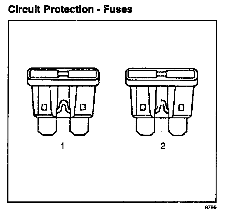 The fuse is the most common method of an automotive wiring circuit protection. Whenever there is an excessive amount of current flowing through a circuit the fusible element will melt and create an open or incomplete circuit. Fuses are an one time protection device and must be replaced each time the circuit is overloaded. To determine if a fuse is open, remove the suspected fuse and examine the element in the fuse for an open (break). If not broken, also check for continuity using a DMM or a continuity tester. If the element is open or continuity is suspect, replace the fuse with one of equal current rating.