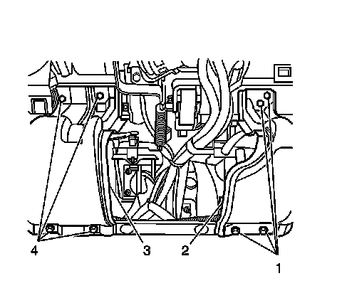 1. Install the IP drivers knee bolster panel (2 or 3). Secure the panel with the 4 bolts (1 or 4).