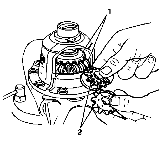 27. Install both side bearing adjusters (2) on the side bearing races.