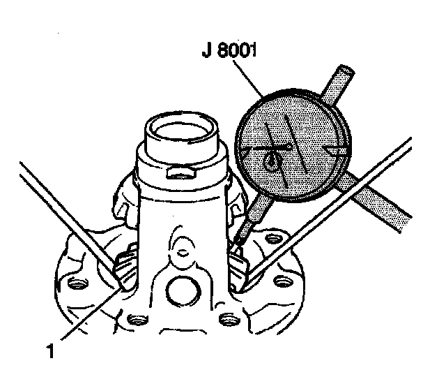^ Measure the right differential side gear (1) end play using the J 8001.
