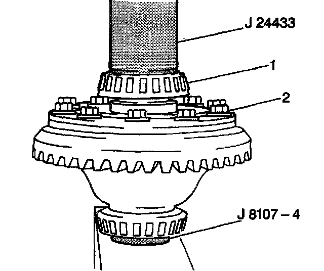 ^ Use the J 24433 with the J 8092 in order to place the right differential side bearing on the right differential case with the tapered side up and slowly press the right differential side bearing onto the right differential case.