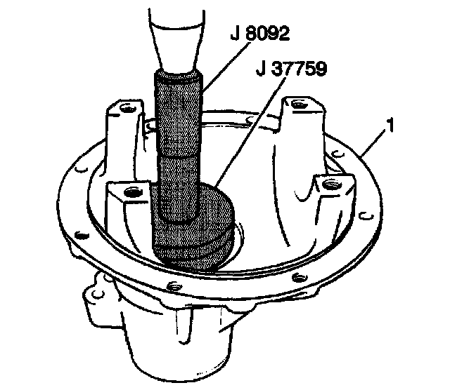 8. Install the inner pinion bearing race into the differential carrier (1) using the J 37759 with the J 8092.