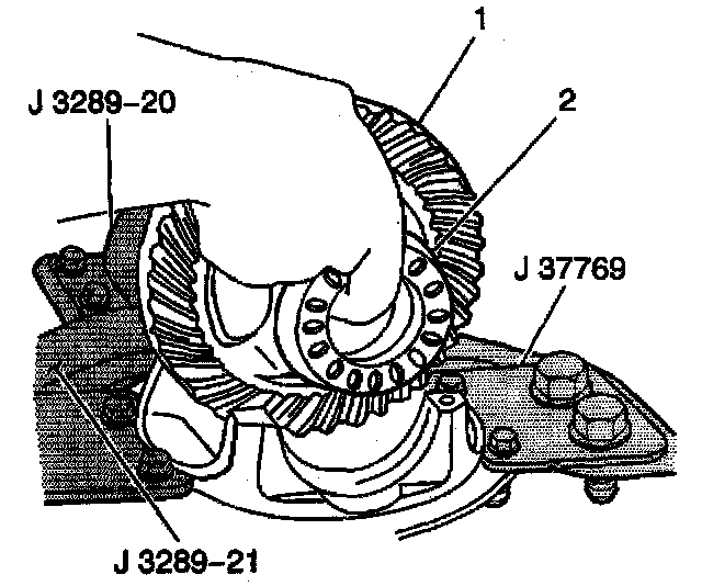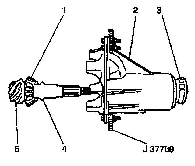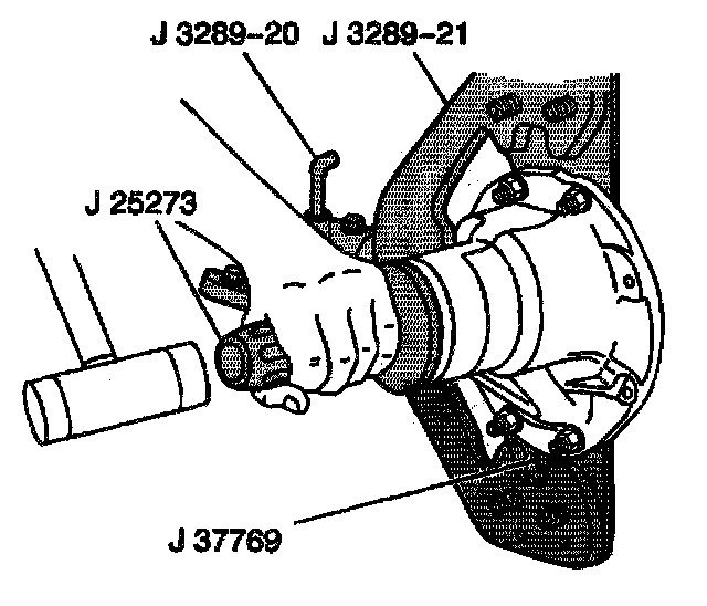 ^ Use the J 37759 with the J 8092 in order to slowly press the inner pinion bearing race evenly into the differential carrier.
