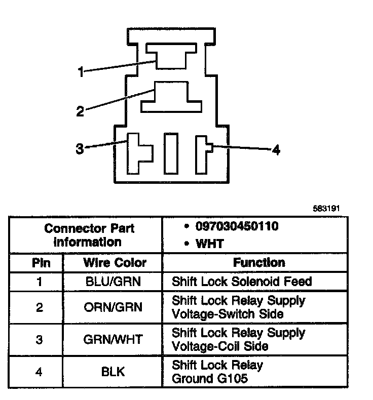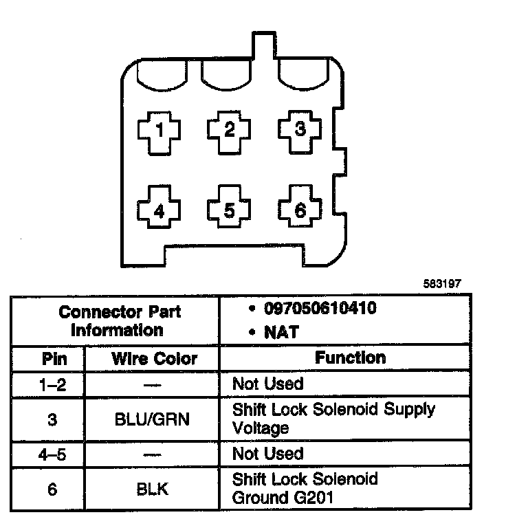 Automatic Transmission Shift Lock Control Connector End Views