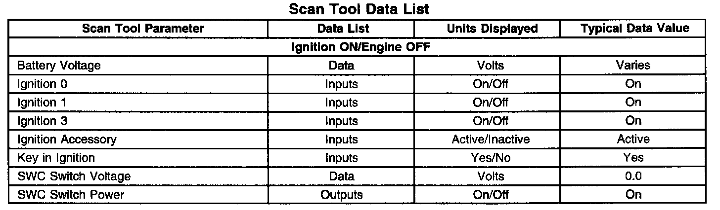 Scan Tool Data List: