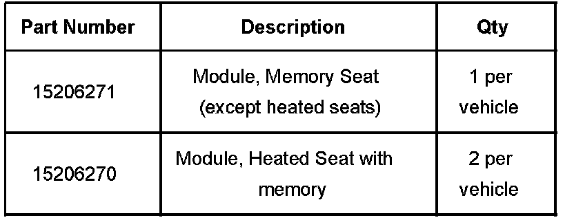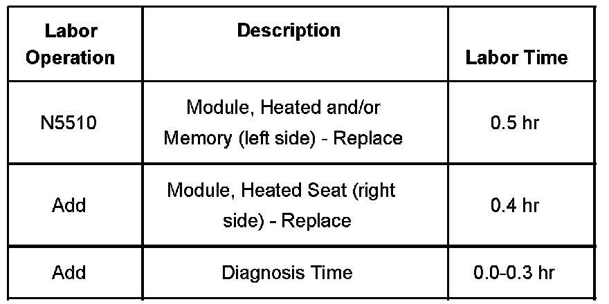 This repair is not to be performed on vehicles without memory/heated seats. In the event a vehicle without memory/heated seats has an inoperative power seat, use published Service Information for diagnosis.