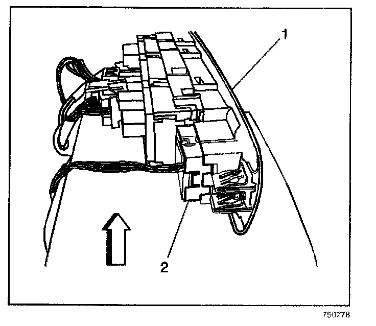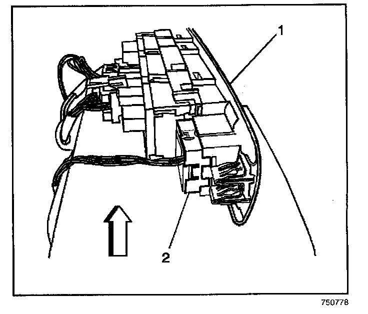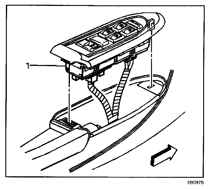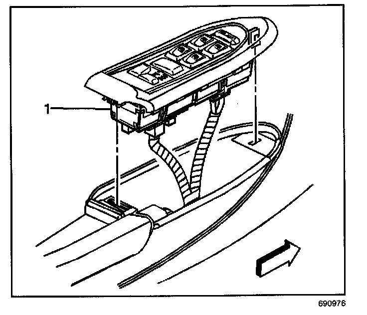 REMOVAL PROCEDURE1. Lift up on the front edge of the door lock and side window switch (1) in order to release the front retaining clip.