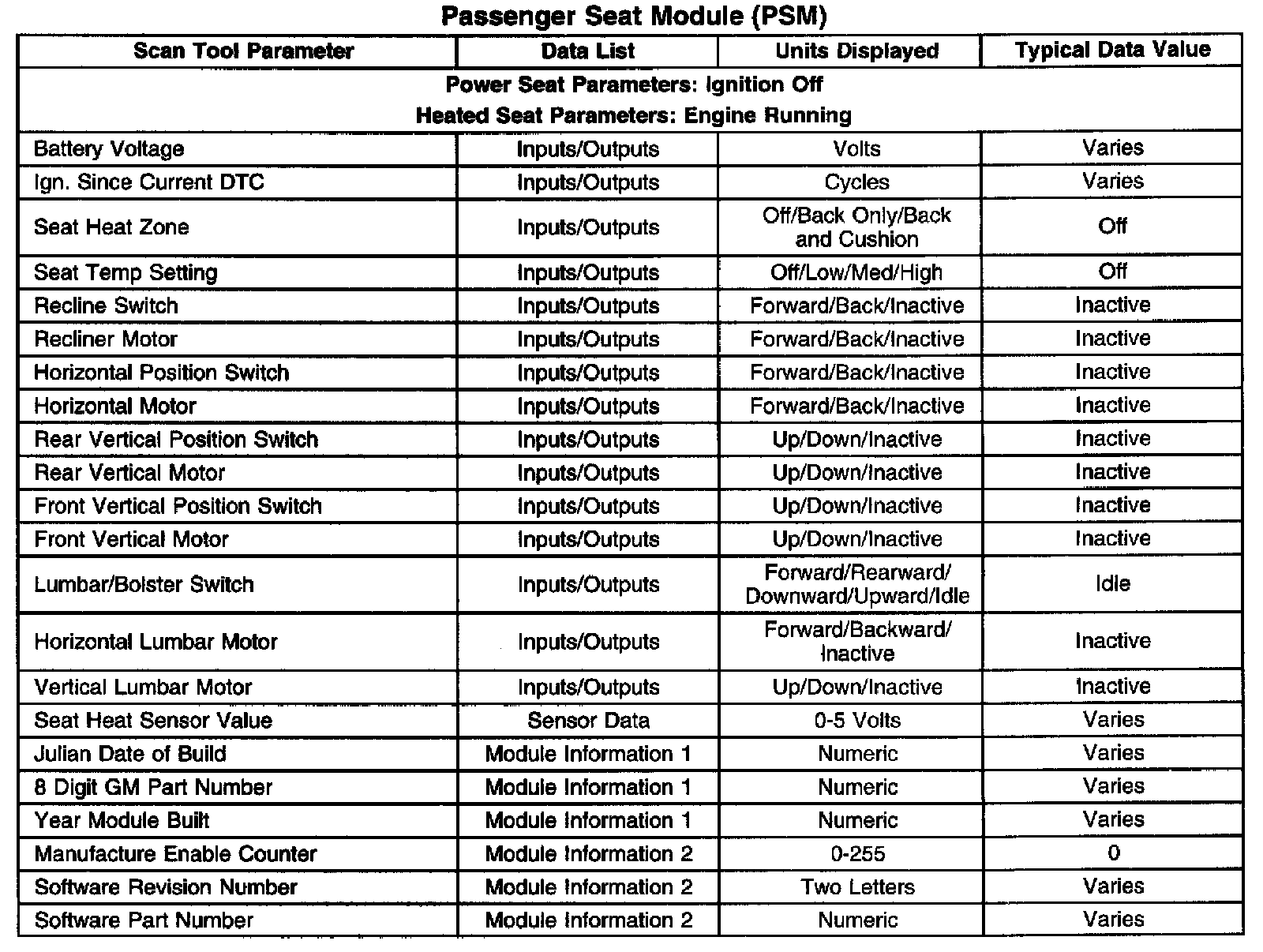 Scan Tool Data List