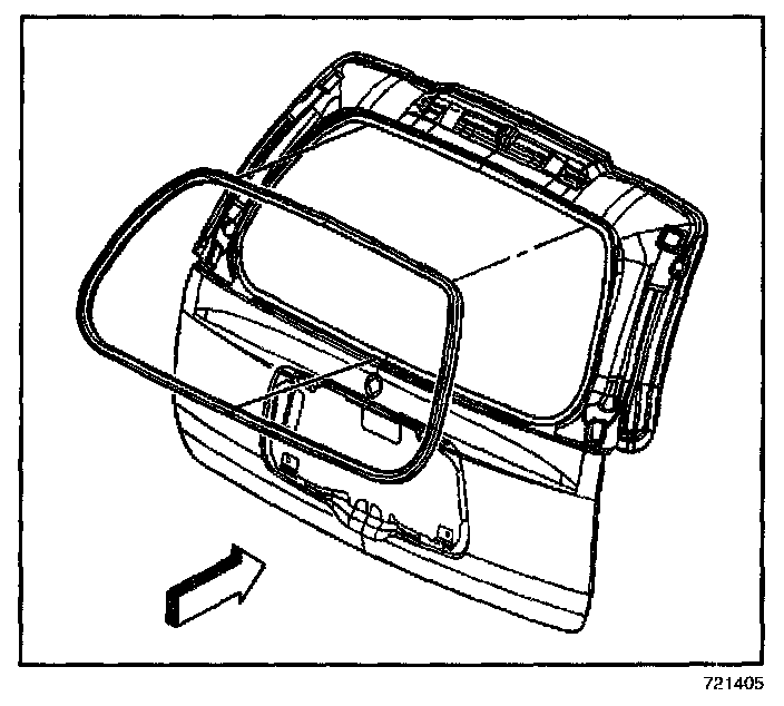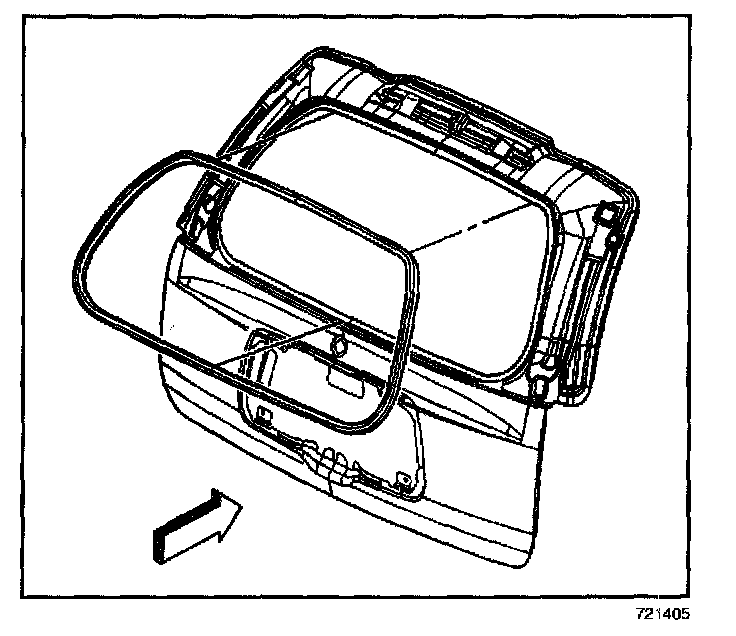 1. Install the liftgate window weatherstrip, starting at the top center of the liftgate window opening position the liftgate window weatherstrip to the pinch-weld flange and working down the right and left sides towards the bottom center, being careful not to stretch the liftgate window weatherstrip while installing it.