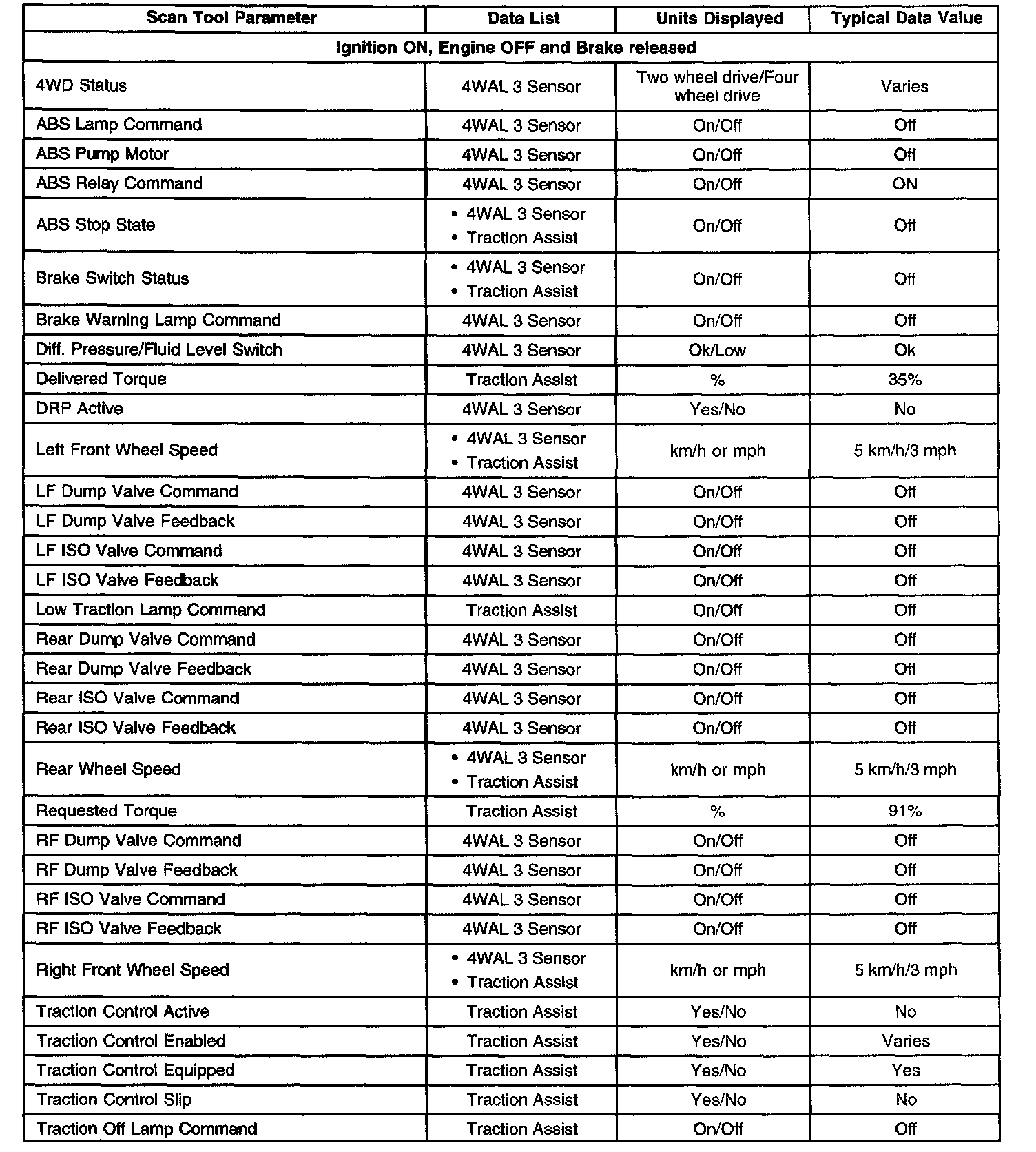 Scan Tool Data List