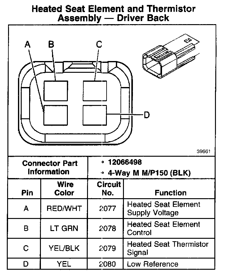 Heated Seat Element And Thermistor Assembly - Driver Back: