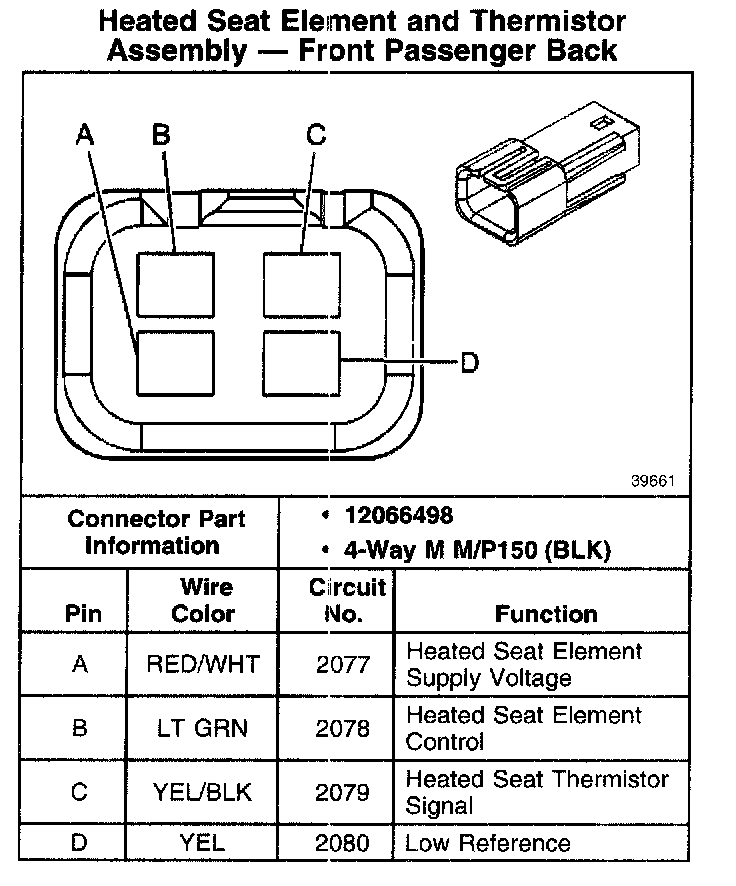 Heated Seat Element And Thermistor Assembly - Front Passenger Back: