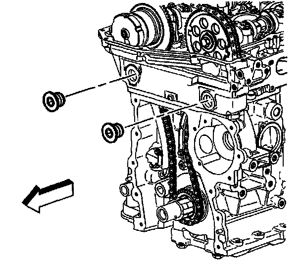 18. Remove the timing chain tensioner bolts.