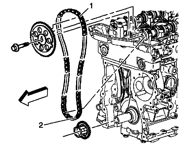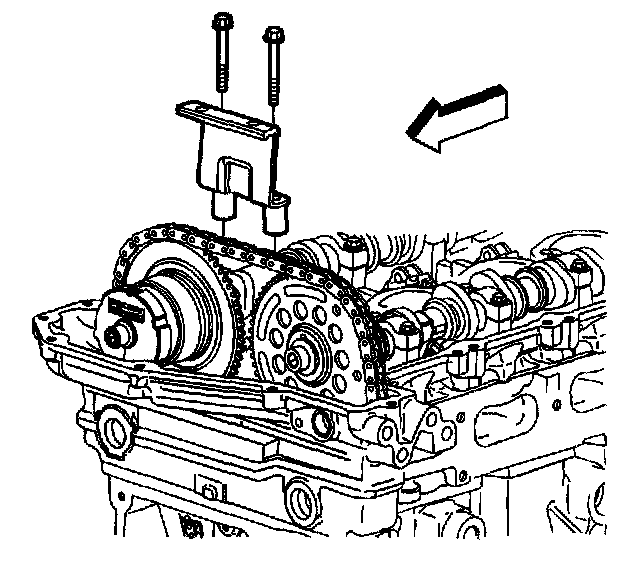 Notice: The camshaft actuator must be fully advanced during installation. Engine damage may occur if the camshaft actuator is not fully advanced.
