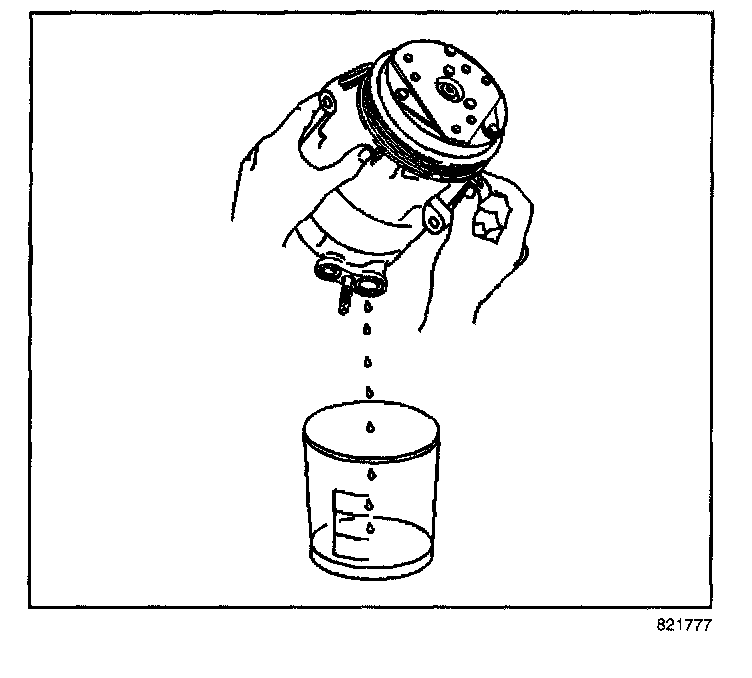2. Measure and record the amount of oil drained from the removed compressor. This measurement will be used during installation of the replacement compressor.