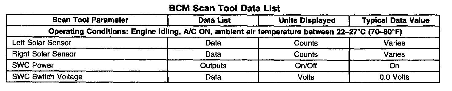 Scan Tool Data List - Body Control Module (BCM)