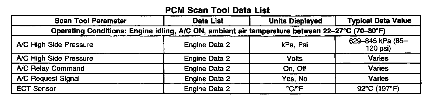 Scan Tool Data List - Powertrain Control Module (PCM)