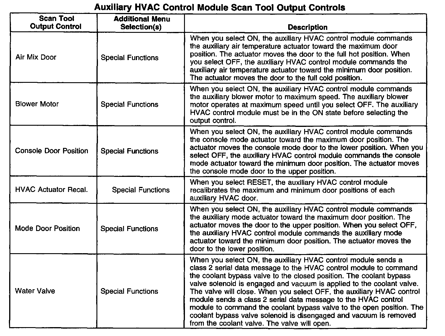 Auxiliary HVAC Control Module Scan Tool Output Controls: