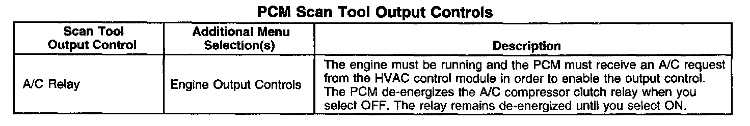 PCM Scan Tool Output Controls: