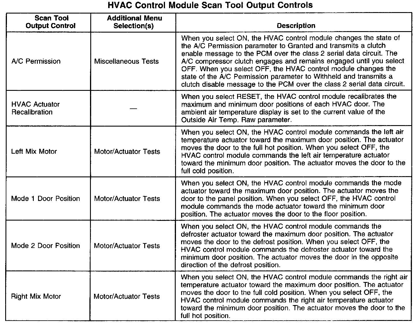 HVAC Control Module Scan Tool Output Controls: