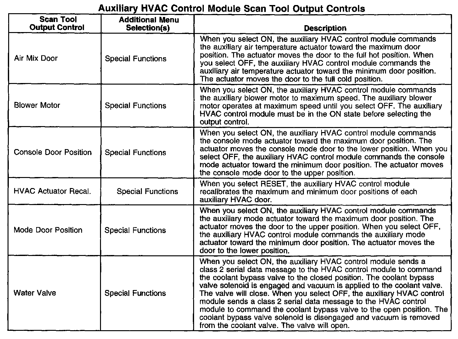 Scan Tool Output Controls - HVAC Control Module
