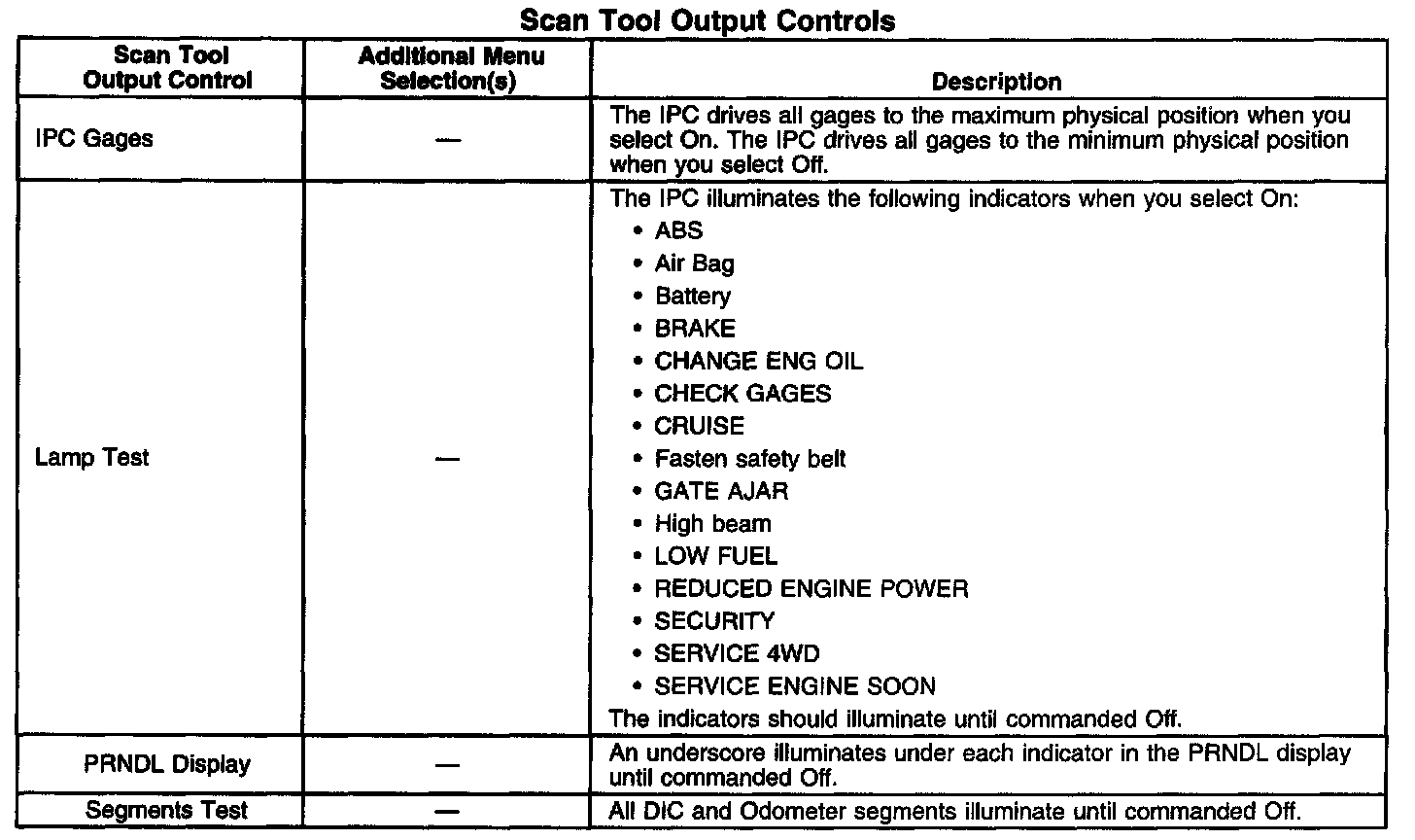Scan Tool Output Controls: