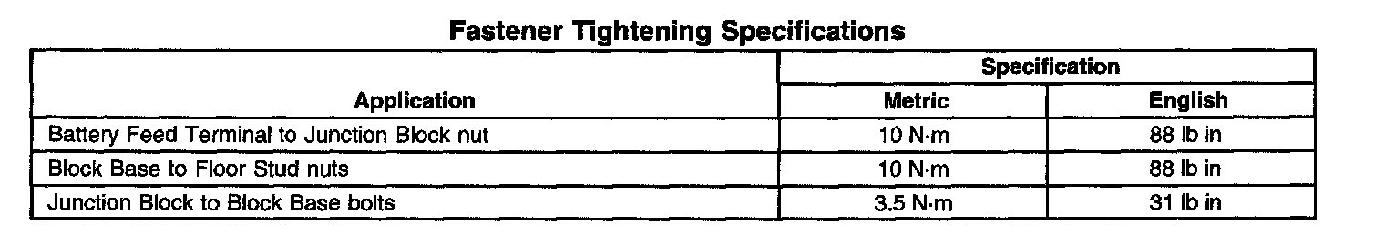 Fastener Tightening Specifications: