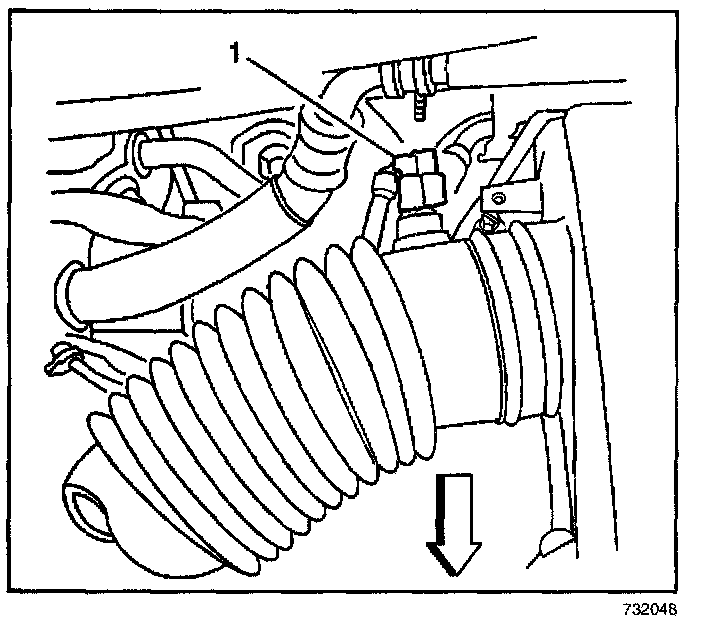 2. Remove the IAT sensor (1) from the air duct with a twisting and pulling motion.
