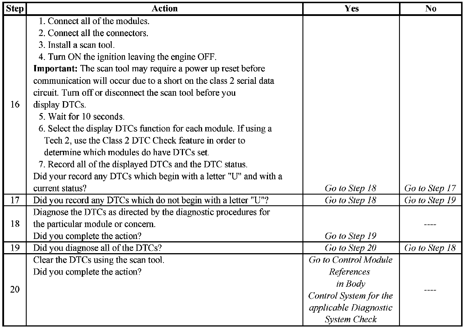 12. Normal class 2 serial data communication cannot take place until the body control module (BCM) sends the appropriate power mode message. If the BCM does not send a wake-up message, other modules on the class 2 serial data circuit may not communicate.