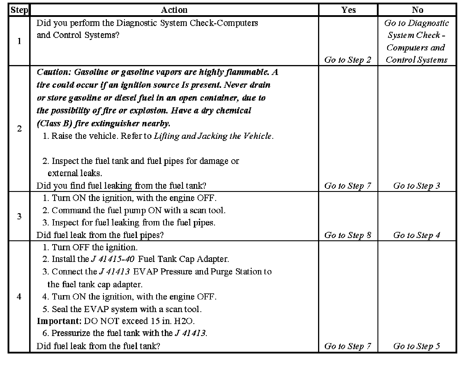 Fuel Tank Leak Test - Steps 1-4: